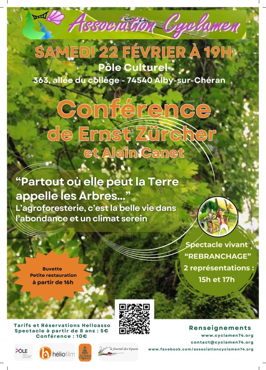 Samedi 22 février 2025 au Pôle Culturel d’Alby sur Chéran, l’association Cyclamen vous propose une fin de journée dédiée à l’ARBRE et à l’agroforesterie, avec au programme :